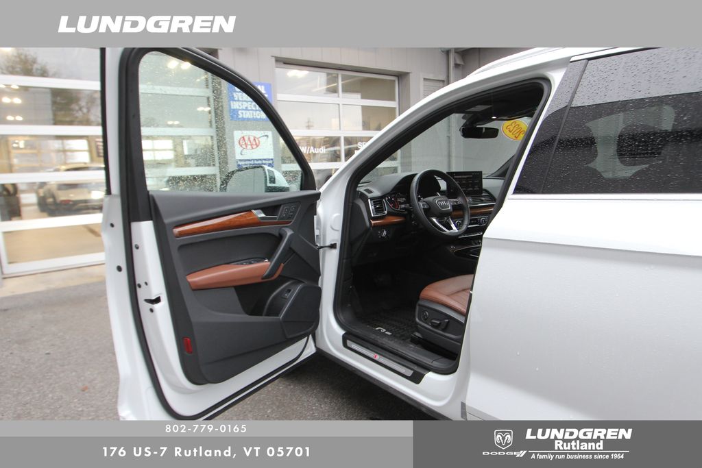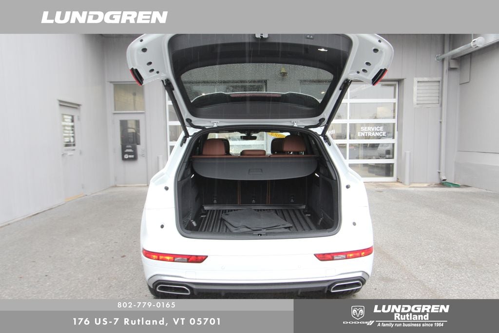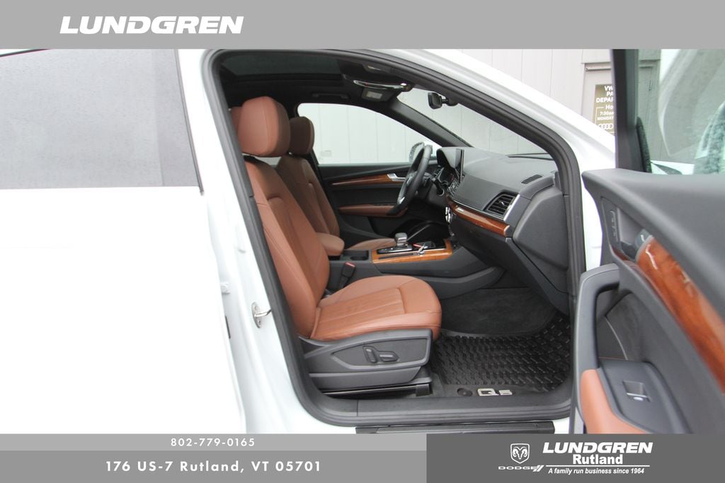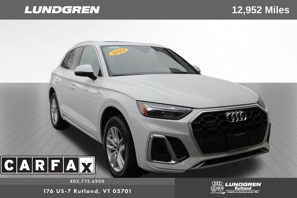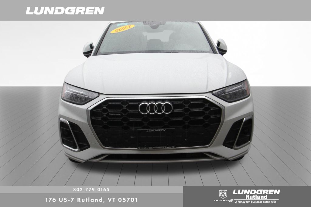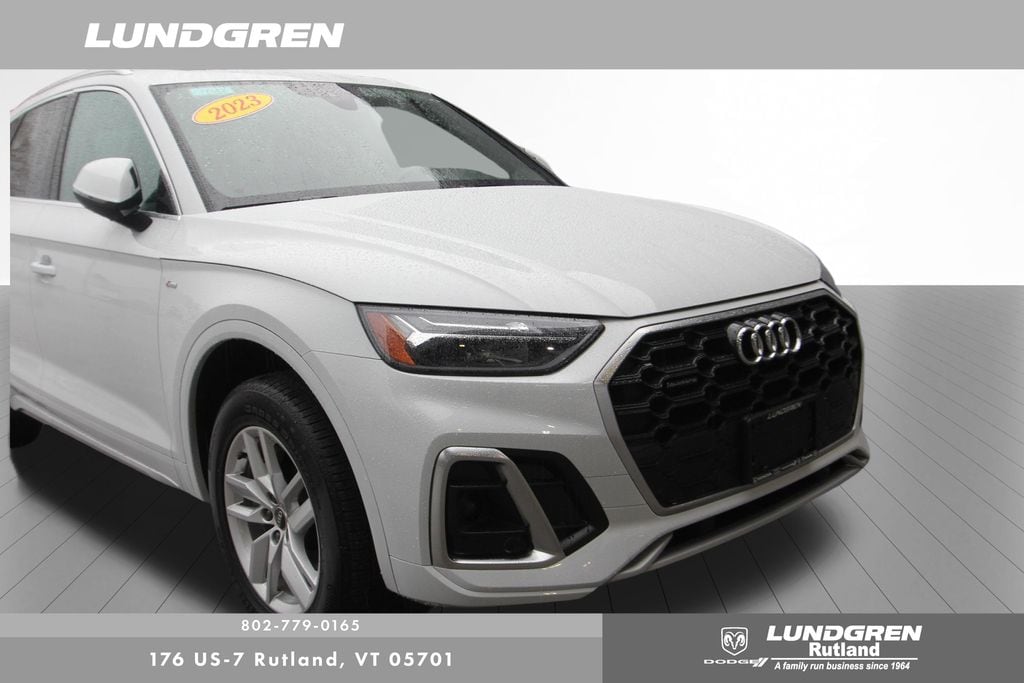Full financing options available for all levels of credit. We want your trade in! We are Carfax vehicle history certified, buy with confidence. Q5 45 S line Premium quattro, 1 Owner, Audi Advanced Key, Auto-Dimming Power Folding Exterior Mirrors, Convenience Package, Driver Seat Memory, Exterior Parking Camera Rear, Heated 8-Way Power Front Bucket Seats, Heated door mirrors, Heated front seats, Heated Steering Wheel, Leather Seating Surfaces, Panoramic Sunroof, Power Liftgate, Rear air conditioning, Remainder of factory warranty, Remote keyless entry, SiriusXM w/360L, Telescoping steering wheel, Tilt steering wheel, Wheels: 18" 5-Arm-Turbine Design. CARFAX One-Owner. 2023 Q5 Glacier White Metallic Audi 45 S line Premium quattro