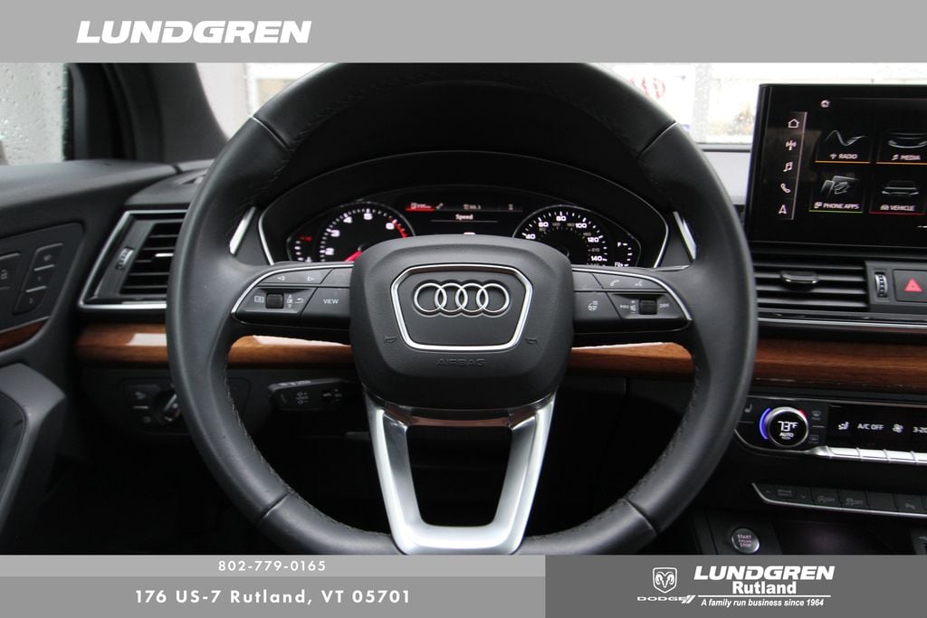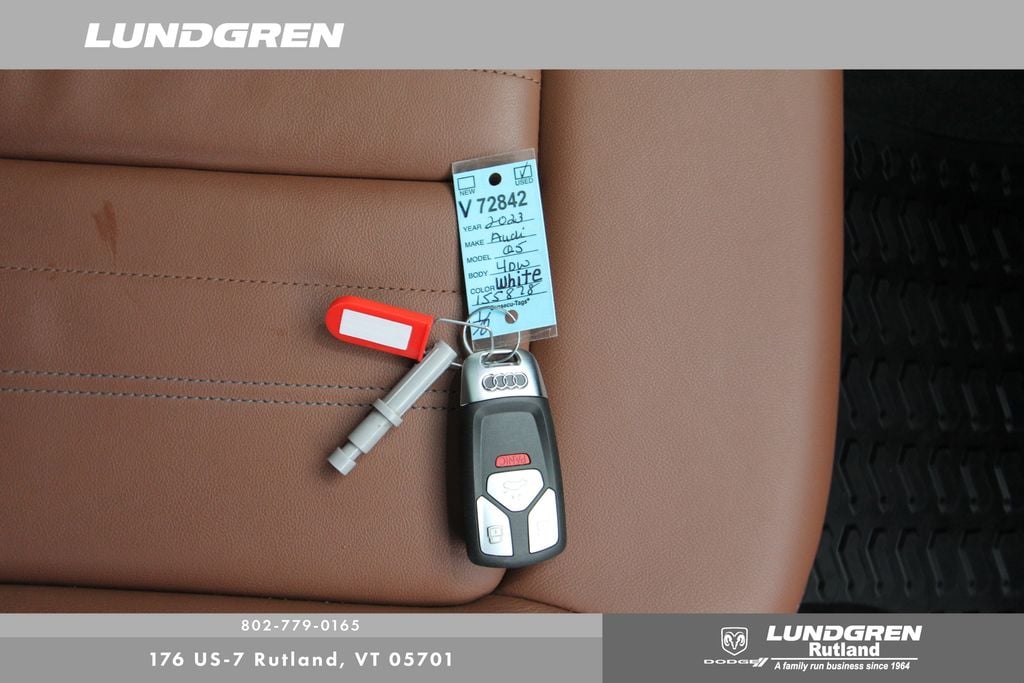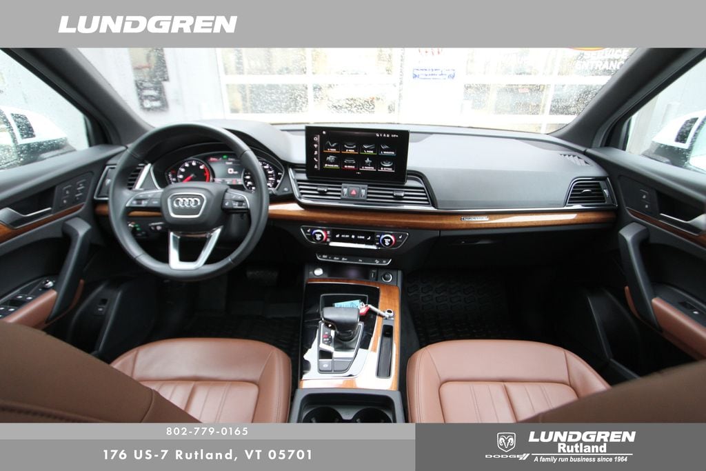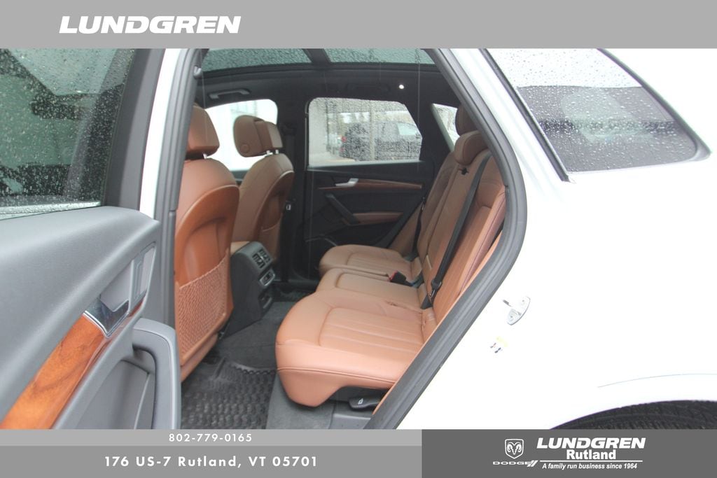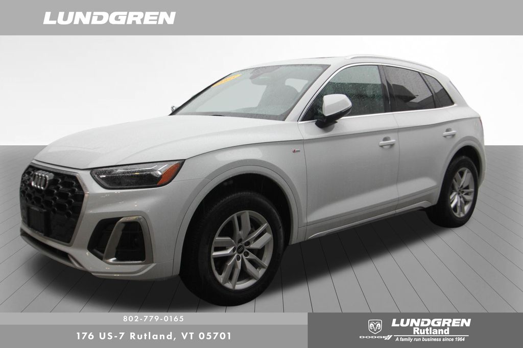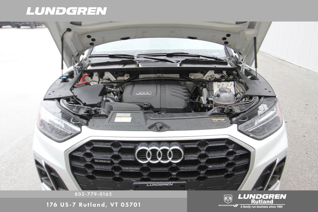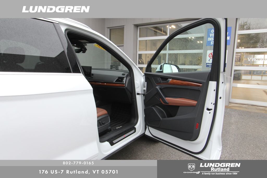 Full financing options available for all levels of credit. We want your trade in! We are Carfax vehicle history certified, buy with confidence. Q5 45 S line Premium quattro, 1 Owner, Audi Advanced Key, Auto-Dimming Power Folding Exterior Mirrors, Convenience Package, Driver Seat Memory, Exterior Parking Camera Rear, Heated 8-Way Power Front Bucket Seats, Heated door mirrors, Heated front seats, Heated Steering Wheel, Leather Seating Surfaces, Panoramic Sunroof, Power Liftgate, Rear air conditioning, Remainder of factory warranty, Remote keyless entry, SiriusXM w/360L, Telescoping steering wheel, Tilt steering wheel, Wheels: 18" 5-Arm-Turbine Design. CARFAX One-Owner. 2023 Q5 Glacier White Metallic Audi 45 S line Premium quattro