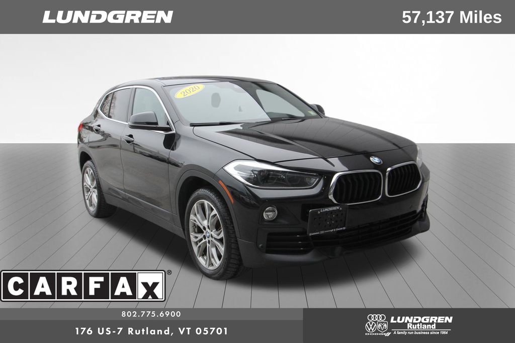 Full financing options available for all levels of credit. We want your trade in! We are Carfax vehicle history certified, buy with confidence. X2 xDrive28i, AWD, Apple CarPlay Compatibility, Auto-Dimming Interior & Exterior Mirrors, Auto-Dimming Rear-View Mirror, Comfort Access Keyless Entry, Convenience Package, Exterior Parking Camera Rear, Head-Up Display, Heated door mirrors, Heated Front Seats, Heated Steering Wheel, Hi-Fi Sound System, Lumbar Support, Navigation, Navigation System, Panoramic Moonroof, Power Front Seats, Power Liftgate, Power-Folding Mirrors, Premium Package, Remote keyless entry, SiriusXM Satellite Radio, Telescoping steering wheel, Tilt steering wheel, Universal Garage-Door Opener, Wheels: 18" x 7.5" Y-Spoke (Style 566). Clean CARFAX. 2020 X2 Black Sapphire Metallic BMW xDrive28i AWD