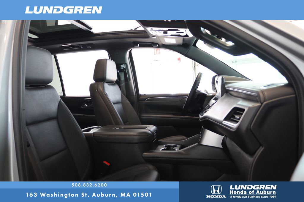 The exterior of the Tahoe LT exudes a bold, commanding presence with its Gray finish and sleek, modern design. The available 22-inch multi-spoke gloss black wheels and power panoramic sunroof add a touch of premium style that is sure to turn heads.