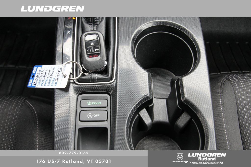 Our factory trained technicians completed the safety check, replaced the front brakes and rear brakes along with an oil and filter change. Civic EX, 4D Sedan, 1 Owner, Apple CarPlay/Android Auto, Blind Spot Information (BSI) System warning, Brake assist, Electronic Stability Control, Exterior Parking Camera Rear, Forward collision: Collision Mitigation Braking System (CMBS) + FCW mitigation, Heated door mirrors, Heated Front Bucket Seats, Power moonroof, Radio: 180-Watt AM/FM Audio System, Remote keyless entry, Telescoping steering wheel, Tilt steering wheel, Wheels: 17" Alloy w/Gloss Black Inserts. Clean CARFAX. CARFAX One-Owner. 2022 Civic Crystal Black Pearl Honda EX FWD