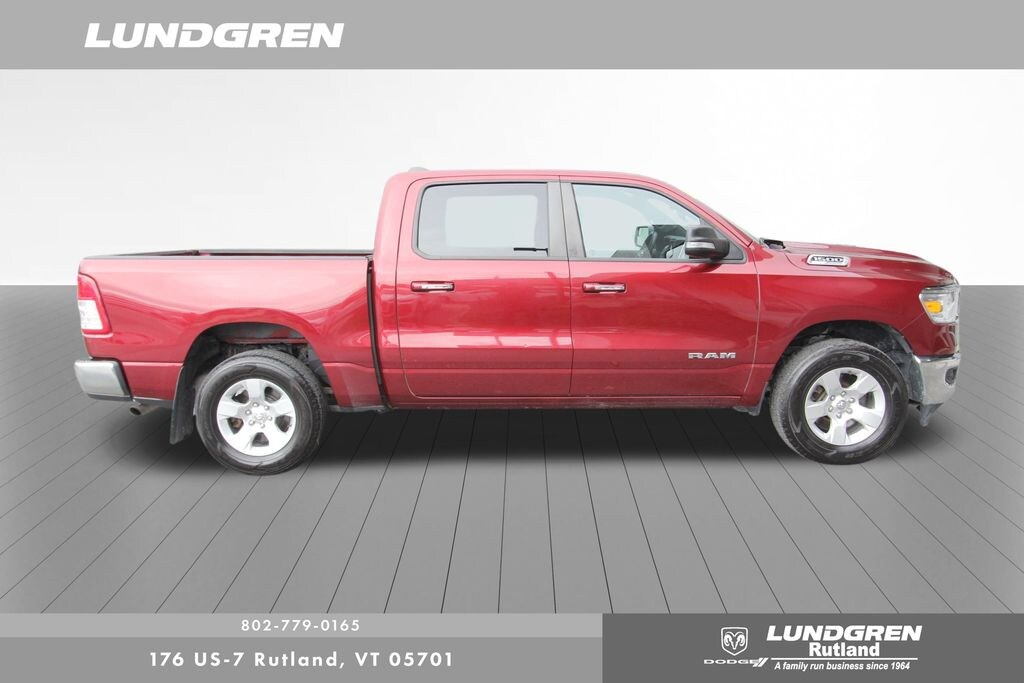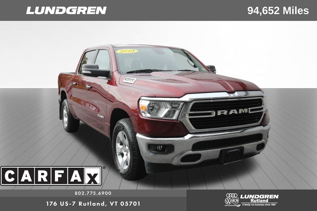 Full financing options available for all levels of credit. We want your trade in! We are Carfax vehicle history certified, buy with confidence. 1500 Big Horn/Lone Star, 4D Crew Cab, Auto-Dimming Rear-View Mirror, Big Horn IP Badge, Big Horn Level 1 Equipment Group, Brake assist, Class IV Receiver Hitch, Cluster 3.5" TFT Color Display, Electronic Stability Control, Foam Bottle Insert (Door Trim Panel), Glove Box Lamp, Heated door mirrors, ParkView Rear Back-Up Camera, Power 4-Way Driver Lumbar Adjust, Power 8-Way Driver Seat, Power Adjustable Pedals, Power door mirrors, Power Heated Fold Away Mirrors, Quick Order Package 23Z Big Horn/Lone Star, Radio: Uconnect 4 w/8.4" Display, Rear 60/40 Folding Seat, Rear Dome w/On/Off Switch Lamp, Rear Power Sliding Window, Rear Window Defroster, Remote keyless entry, Single Disc Remote CD Player, SiriusXM Satellite Radio, Sold and serviced by Lundgren Dodge/Ram, Steering Wheel Mounted Audio Controls, Sun Visors w/Illuminated Vanity Mirrors, Telescoping steering wheel, Tilt steering wheel, Universal Garage Door Opener, Wheels: 18" x 8". Clean CARFAX. 2019 1500 Delmonico Red Pearlcoat Ram Big Horn/Lone Star 4WD