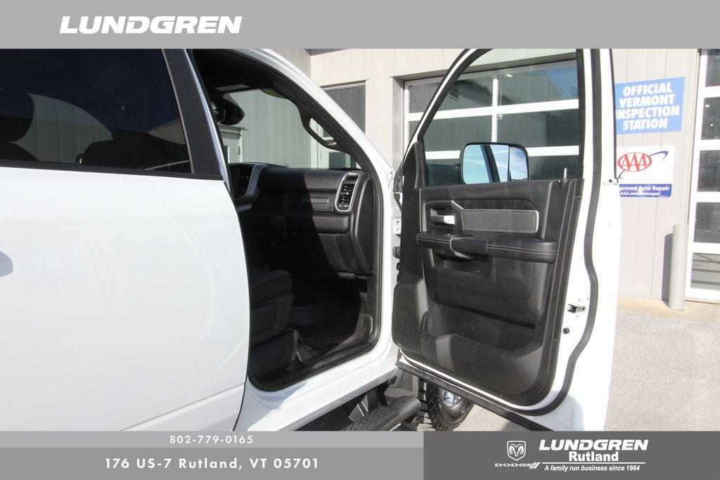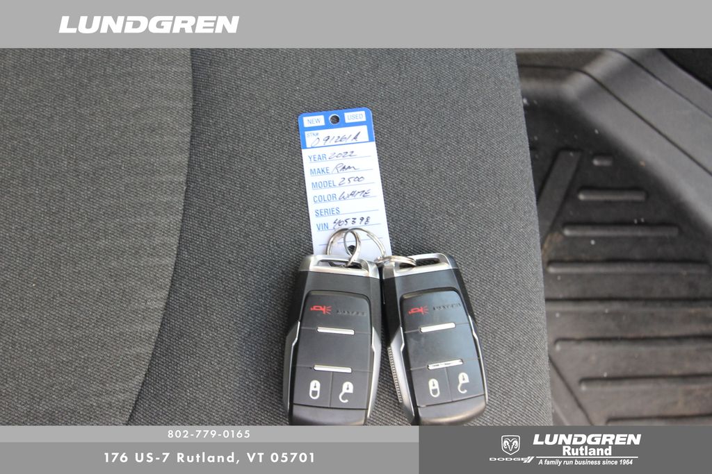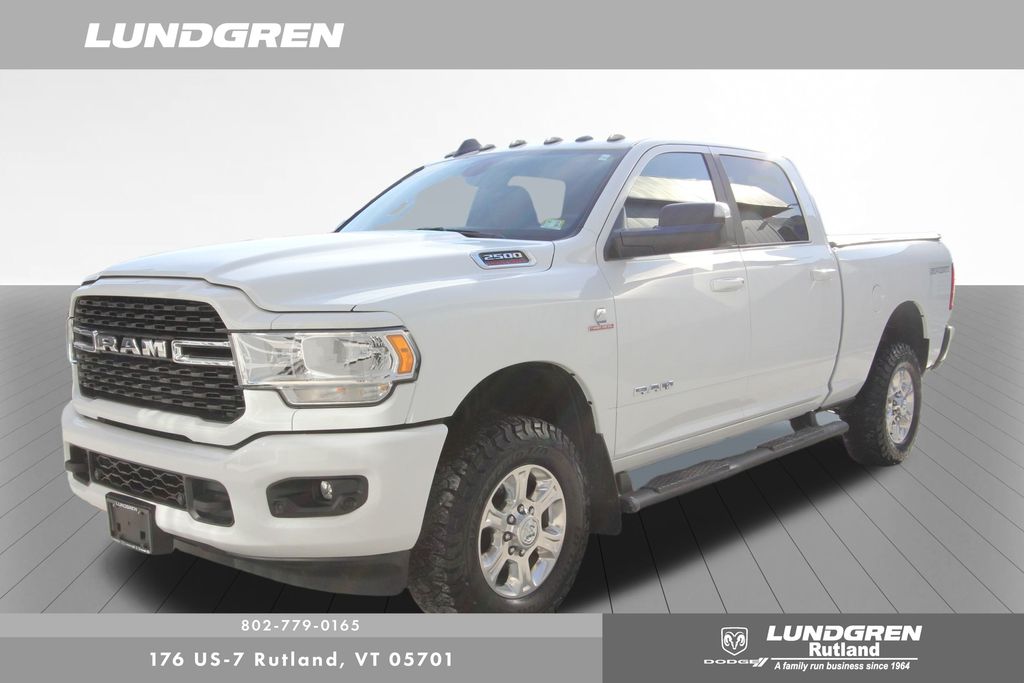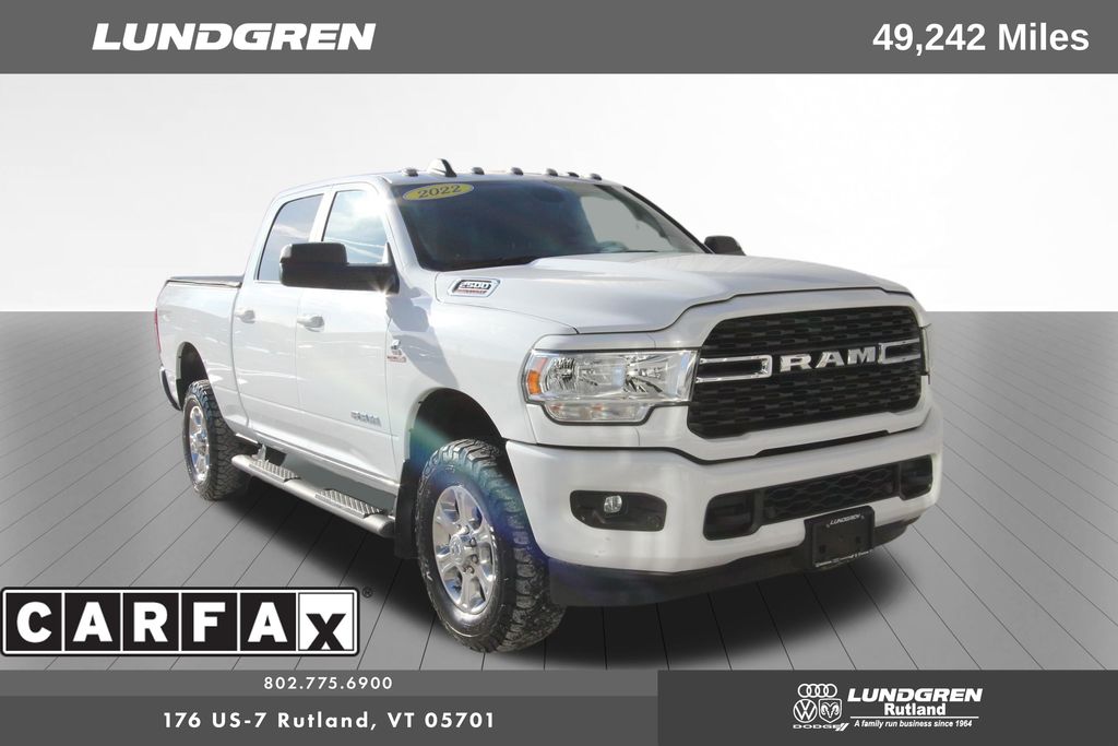 Full financing options available for all levels of credit. We want your trade in! We are Carfax vehicle history certified, buy with confidence. 2500 Big Horn, 4D Crew Cab, Cummins 6.7L I6 Turbodiesel, 1 Owner, 2 Red Vinyl Flags, 2 Way Rear Headrest Seat, 220 Amp Alternator, 2nd Row In Floor Storage Bins, 3 Reflecting Triangles, 4 Way Front Headrests, 40/20/40 Split Bench Seat, 4G LTE Wi-Fi Hot Spot, 8.4" Touchscreen Display, Anti-Spin Differential Rear Axle, Apple CarPlay, Apple CarPlay/Android Auto, Auto-Dimming Rear-View Mirror, Black Interior Accents, Bluetooth Handsfree Phone & Audio, Body Color Door Handles, Body Color Grille Surround, Center Hub, Center Stack Storage Drawer, Clearance Lamps, Connectivity - US/Canada, Dash Pass Thru Wire Circuits, DOT Certified Roadside Safety Kit, DOT Fire Extinguisher, Dual Glove Boxes, Foam Bottle Insert (Door Trim Panel), Folding Flat Load Floor Storage, Footwell Courtesy Lamp, Front Armrest w/Cupholders, Front Center Seat Cushion Storage, Front Fog Lamps, Front Seat Back Map Pockets, Global Telematics Box Module (TBM), Glove Box Lamp, Google Android Auto, GPS Antenna Input, Heated door mirrors, Heated Front Seats, Heated Seats & Wheel Group, Heated Steering Wheel, I/P Mounted Auxiliary Switches, Integrated Center Stack Radio, Integrated Voice Command w/Bluetooth, Leather Wrapped Steering Wheel, Level A Equipment Group, Locking Lower Glove Box, Manual Adjust 4-Way Front Passenger Seat, Painted Front Bumper, Painted Rear Bumper, ParkView Rear Back-Up Camera, Power 2-Way Driver Lumbar Adjust, Power Adjust 8-Way Driver Seat, Power Adjustable Pedals, Premium Cloth 40/20/40 Bench Seat, Quick Order Package 2HZ Big Horn, Radio: Uconnect 5 W w/8.4" Display, Rear 60/40 Folding Seat, Rear Dome w/On/Off Switch Lamp, Selectable Tire Fill Alert, SiriusXM Satellite Radio, Snow Chief Group, Sold and serviced by Lundgren Dodge/Ram, Spare Fuses, Sport Appearance Package, Sport Decal, Steering Wheel Mounted Audio Controls, Storage Tray, Sun Visors w/Illuminated Vanity Mirrors, Universal Garage Door Opener, Wheels: 18" x 8.0" Polished Aluminum. Clean CARFAX. CARFAX One-Owner. 2022 2500 Bright White Clearcoat Ram Big Horn 4WD