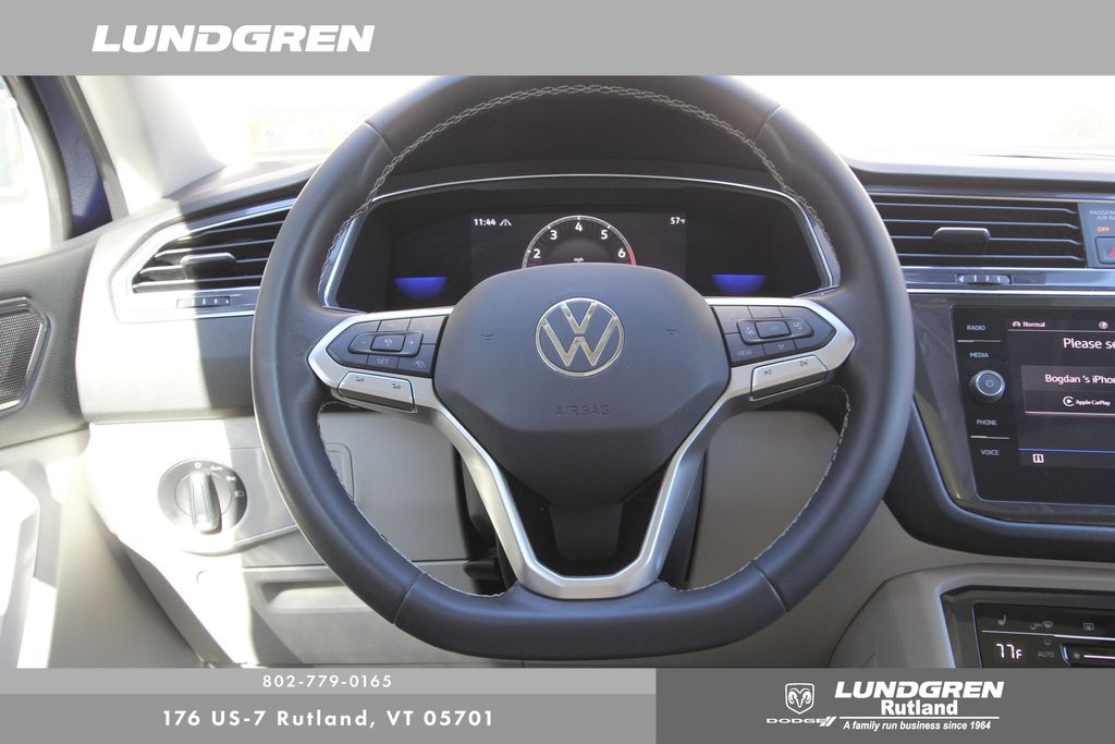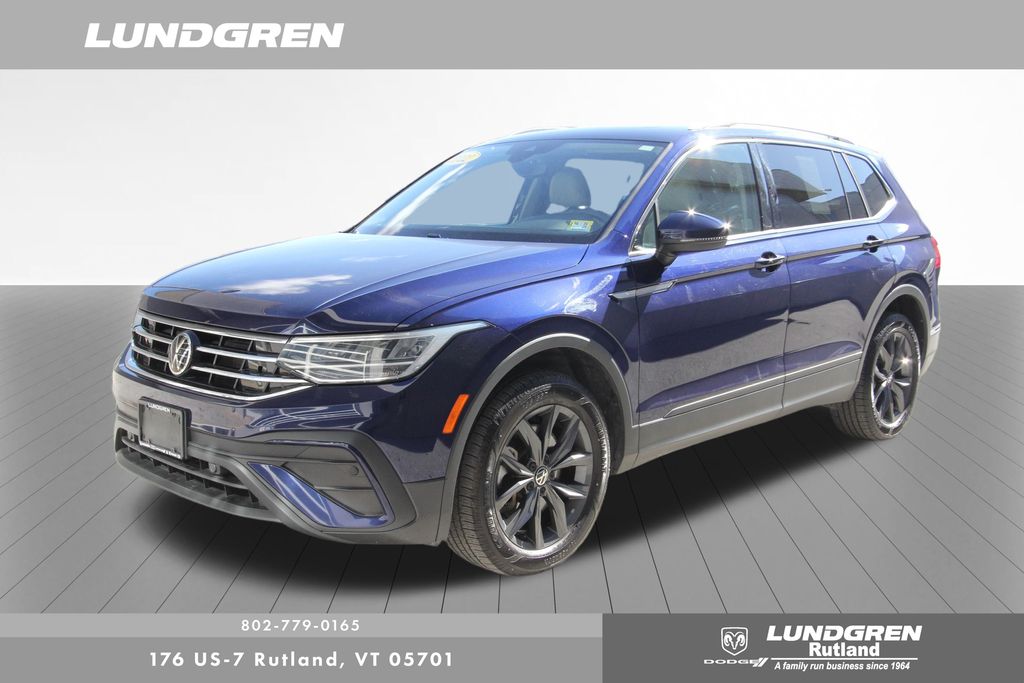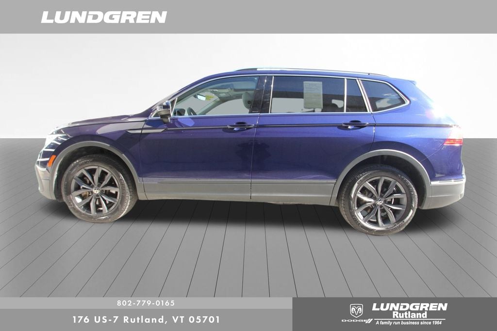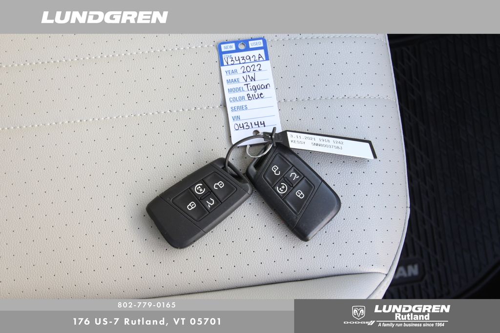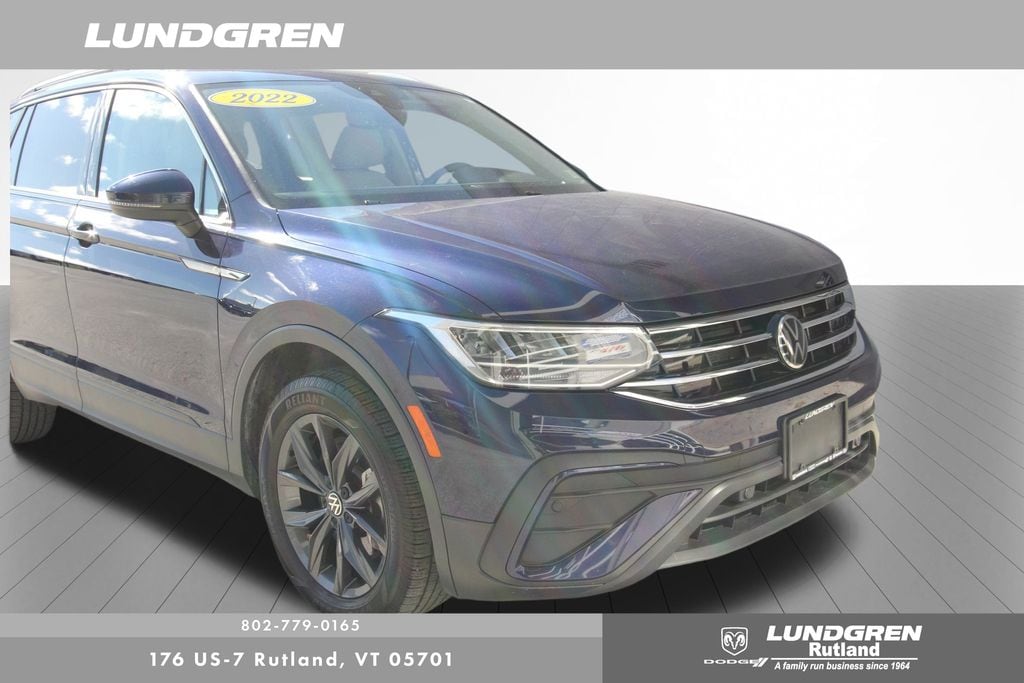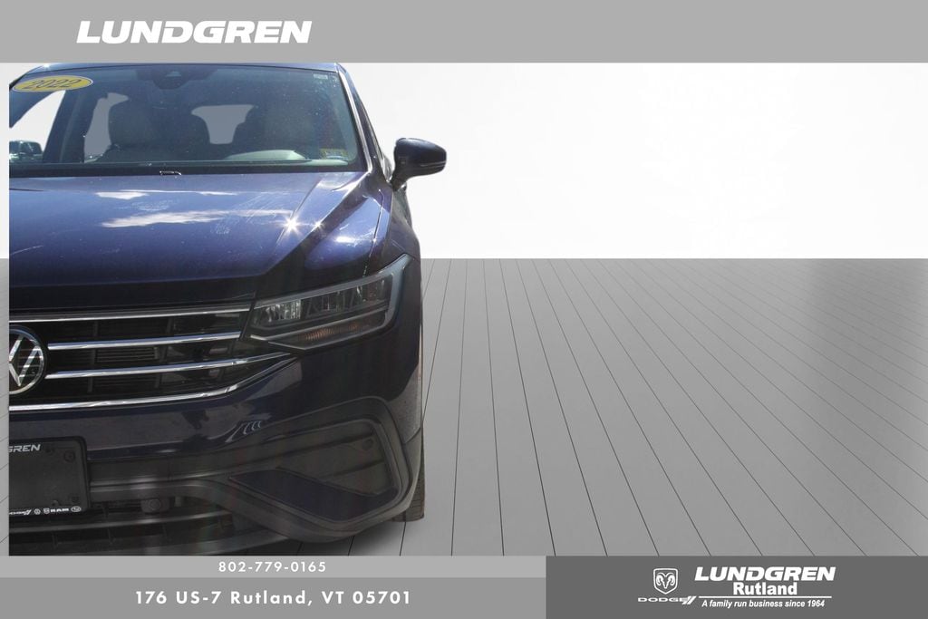 Our factory trained technicians completed the safety check, replaced the front brakes and performed an oil and filter change. Tiguan 2.0T SE, AWD, 1 Owner, Auto-Dimming Rear-View Mirror, Exterior Parking Camera Rear, Heated door mirrors, Heated front seats, Panoramic Sunroof Package, Power door mirrors, Power Liftgate, Radio: MIB3 Composition Media AM/FM/HD, Remote keyless entry, Sold and serviced by Rutland VW, Telescoping steering wheel, Tilt steering wheel, Wheels: 18" Dark Graphite 10-Spoke Alloy. Clean CARFAX. CARFAX One-Owner. 2022 Tiguan Atlantic Blue Metallic Volkswagen 2.0T SE AWD